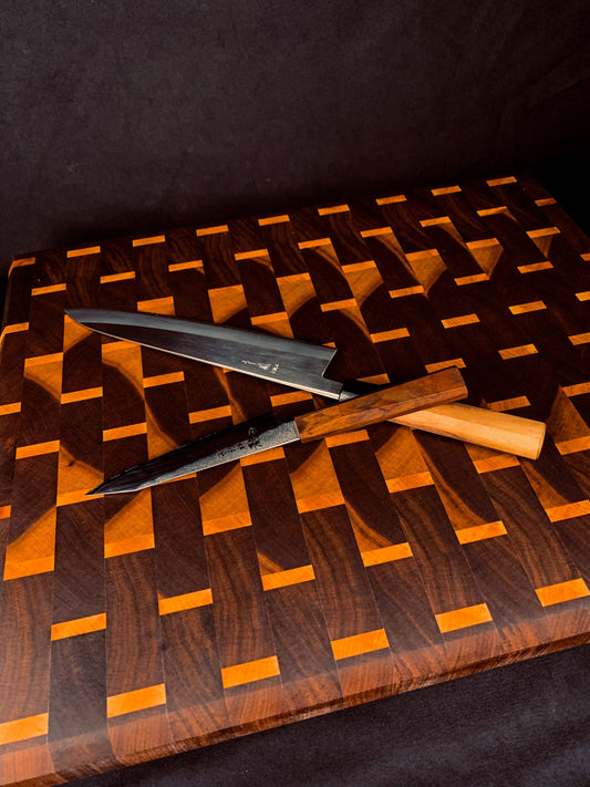 Luxury End Grain Maple and Walnut Cutting Board | Elegant End Grain Wood Butcher Block | Craftsman Wooden Chopping Block